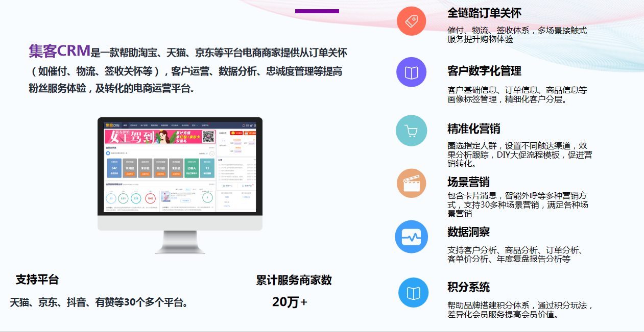 1月 ,集客CRM旗艦版上線,完善 了客戶服務(wù)營(yíng)銷分析體系